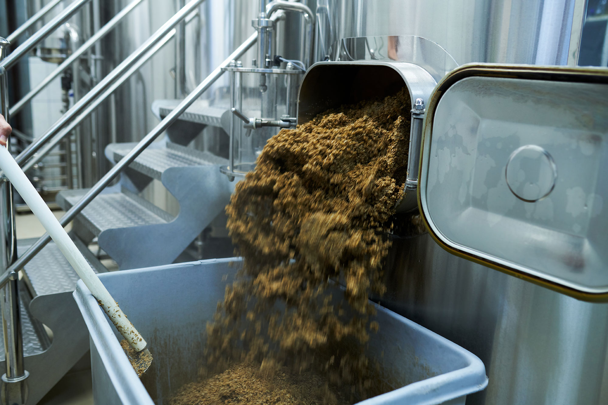 Grain materials are run through a roller or hammer mill to reduce particle size and create uniformity.  Increasing the number of particles and surface area per volume is critical for increasing access to digestive enzymes.